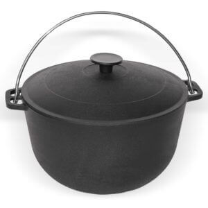 На пикнике также незаменимы и казаны чугунные, особенно если вы отдыхаете на берегу реки. Для приготовления ухи – то, что нужно.